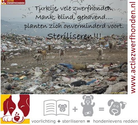 <p>ActieZwerfhonden is een organisatie die zich op brede schaal bezig houdt met de diverse aspecten van het (zwerf)honden leed in Turkije. Turkije heeft miljoenen zwerfhonden. De enige structurele en humane manier om een eind aan dit probleem te maken is het steriliseren van de honden. Dit is ook de enige manier om een eind te maken aan een hoop dierenleed. Hoe dit werkt leest u op onze website. Verder ondersteunt de stichting een particulier asiel in Istanbul en probeert zij een mentaliteitsverandering teweeg te brengen onder de Turkse bevolking en overheid. Een sterilisatie kost 30 euro en ons streven is om 200 - 400 honden per maand te steriliseren.</p>