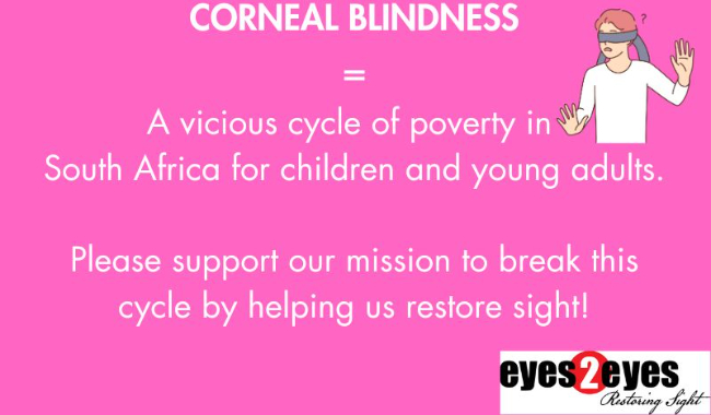 Eyes2Eyes is a registered non profit working to prevent blindness. Our mission is to assist young public health patients with preventable corneal blindness, with life changing sight restoration. Patients are referred to us from the Groote Schuur Hospital Cornea Clinic, the George Hospital and the Discount Vision Clinic in Port Elizabeth. We fund highly technical lenses to treat advanced cases of keratoconus. Public hospitals do not fund these lenses. Without our help, these patients are sent home to live a life with unnecessary blindness. Keratoconus starts in the teenage years. It's critical to treat these patients before their education, mental health & personal development is impacted.